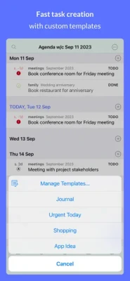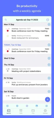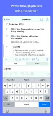 + AGENDA: Gives you a weekly agenda on your iPhone and iPad. Events from your org files are shown alongside those from your calendar.