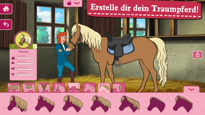 Du wolltest schon immer ein eigenes Pferd haben? Toll, hier hast du die Möglichkeit, dir dein Traumpferd auszusuchen! Du kannst zwischen verschiedenen Mähnen, Schweifen und Fellfarben auswählen und dein Pferd mit einer großen Auswahl an Sätteln, Halftern und Pferde-Accessoires noch schöner machen! Dein Liebling muss auch gepflegt, gestreichelt, ausgeritten und trainiert werden: Hier kannst du dir Sterne erspielen und dadurch weitere tolle Pferde-Accessoires und Überraschungen bekommen!