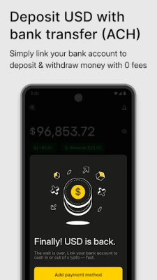 - Link a bank account in minutes to deposit and withdraw USD with zero fees.