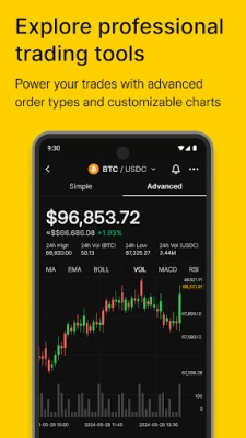 - Trade like a pro with advanced trading tools, live charts, and real-time order book information.
