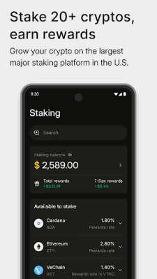 - Stake 20+ cryptocurrencies, including Ethereum (ETH), Solana (SOL), Cardano (ADA), BNB, and many of the largest Proof-of-Stake (PoS) assets.
