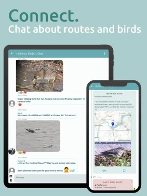 -- Nearby Birder Chat: A geospatial chat room where messages are stored based on location and can be interacted with based on your proximity. Stay informed about recent birding conditions, sightings, and hotspot details, and connect with local birders wherever you are! No need to fret about how to join the local birding group and what app they might be using.