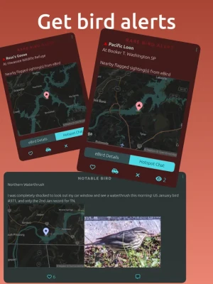 -- Rare Bird and Hotspot Chats: Tapping on an RBA in your activity feed or directly from hotspots on maps will transport you to a view of the chat focused on a radius around that location. Find out if the bird is still being seen and discuss strategies for relocating it before making the trip!