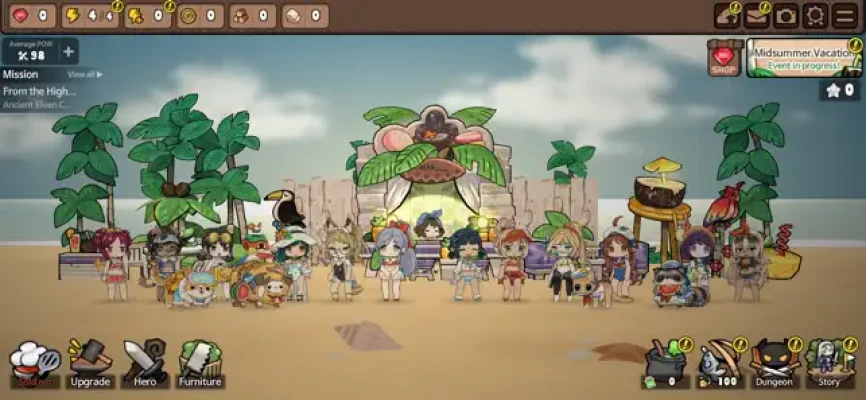- Cute clothes and furniture that can be used freely to decorate heroes and town