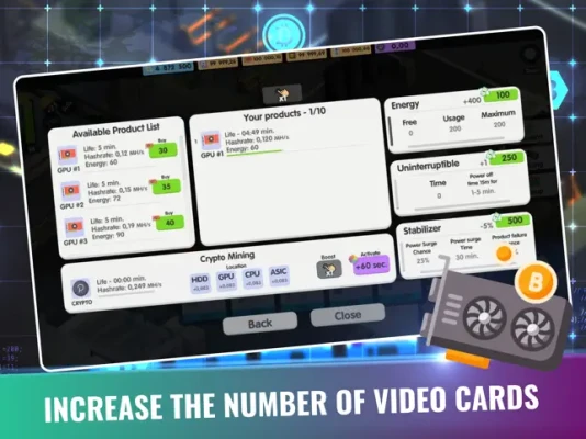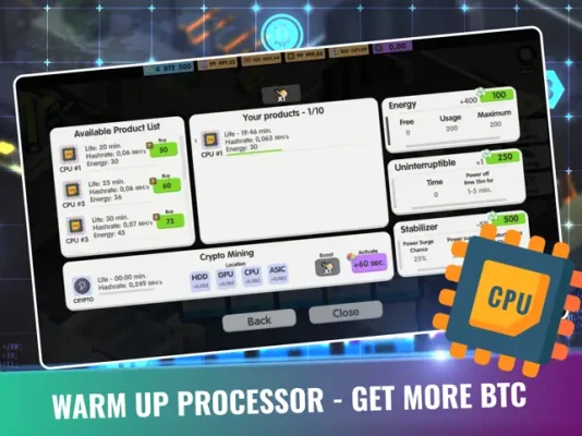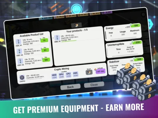 Hire and upgrade factory parts to speed up your process, earn idle cash, upgrade your rigs and mine in this simulation video game! Click and tap, then tap some more and start your BTC adventure!