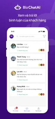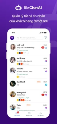 Nếu bạn đang cần 1 ứng dụng chăm sóc khách hàng tập trung từ các nguồn: Facebook, Zalo, webiste...Bizfly Chat chính là giải pháp cho bạn. Bizfly Chat được coi như một trợ lý ảo cho mọi cá nhân/doanh nghiệp/công ty có thể hỗ trợ tốt nhất cho khách hàng. Thu thập tất cả những Comment, tin nhắn của khách hàng, tự động cập nhật một cách nhanh nhất. Bạn có thể dễ dàng quản lý, giám sát và phản hồi nhanh chóng.