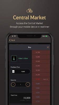 - Buy and sell items on the Central Market whenever, wherever.