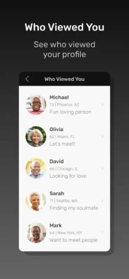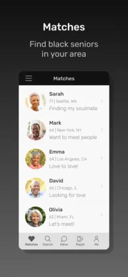 The Black Senior Personals app also has additional features to find black mature men and women to chat with: