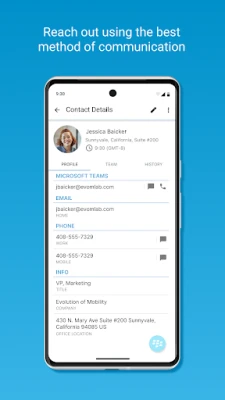 • Quick actions: Work smarter with quick action buttons to compose an email, schedule a meeting or add a contact.