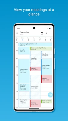 • Calendar: Stay in touch with your colleagues, customers and partners wherever you are. Join meetings or schedule new ones. Even send a quick reply message if you are running late.