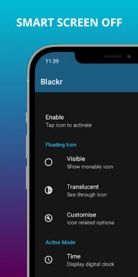 Optional way to use the app is to add a Blackr button in the quick tile settings in device status bar (near wifi, bluetooth, etc). It works seamlessly any time!
