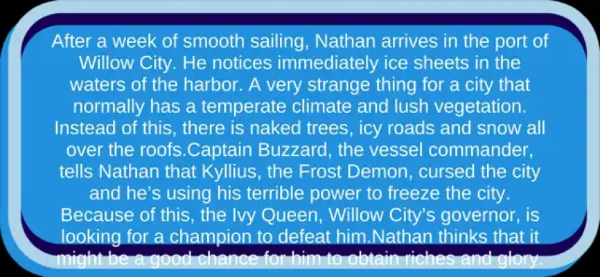 Nathan arrives in the prosperous Willow City in search of wealth and glory, but soon realizes that the city is besieged by evil. The Frost Demon is freezing the Willow City, only Nathan can save its people!