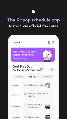 official schedule, including broadcasting apprearance and concert ticketng and even unofficial schedule such as birthday cafes.