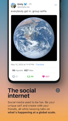 SOME OF THE OLD, ALL OF THE NEW Let’s have fun online again. Be yourself and riff with your friends, all while having the option to keep tabs on what’s happening at a global scale. It all happens on Bluesky.