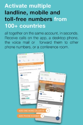 With BNESIM, you can activate multiple landlines, mobile, and toll-free numbers from 100+ countries, all from the same account. Your incoming calls can be terminated straight from BNESIM, a desktop phone, the voicemail, forwarded to other phone numbers, or even to a conference room, giving you a true phone experience.