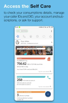 Connect your SIP/desktop phone, receive your calls on multiple smart devices without a PBX, and make your calls from any of the visible mobile numbers. Advanced voice mail, call reports, worldwide toll-free numbers, call blocking, and barring. Welcome to BNE Pro.