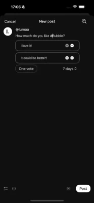 - A rich post composer with polls, emojis, and attachments