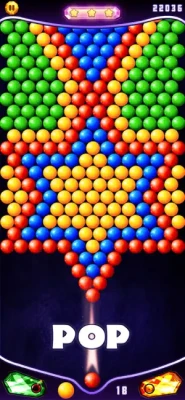 Drag your finger to move the laser sight in the direction of the bubbles. Lift your finger to take a shot. Match at least 3 bubbles of the same color to pop the group and win points. Shoot and pop all the colored bubbles to level up.