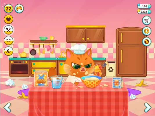 • Over 30 fun mini-games will provide you with food or with coins to buy items for your virtual cat. Have fun playing Catcher, Cat Connect, Find the Cat, 2048, Paint the Cat, Jump, Pop Balloons, Cheese Builder, Fish Ninja, Cat Sings, Nightmare, Jumping Cat, Diver, Stick Ninja, etc.