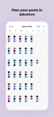 - Schedule posts at specific days and times for a consistent presence across your accounts with calendar view