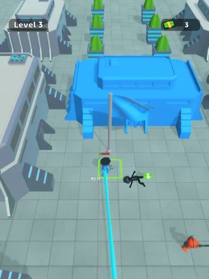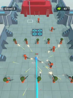 Your mission is clear: defeat enemy soldiers, increase your rope length, upgrade your hero, and infiltrate enemy bases to complete each stage triumphantly. Engage in heart-pounding battles, raining bullets upon your foes as you witness their armies crumble before your eyes. The more enemies you conquer, the greater the rewards you'll earn to enhance your rope length, granting you an even more significant advantage on the battlefield.