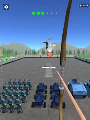 Test your archery skills and recruit troops, vehicles and tanks to compete with other battalions. Take risk and aim for harder targets for stronger recruitment, or aim easy and safe targets for normal recruitment, it's entirely up to you ! There's an extra bonus for bullseye hits !