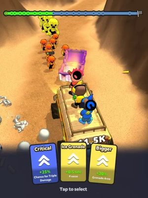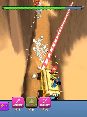 Defend your bus from a horde of zombies in Bus Defend! Select your defenders, upgrade their weapons, and make it to the end without being overrun.• Equip Your Defenders: Equip up to three defenders with machine guns, sniper rifles, lasers, and grenades to defend your bus.• Strategic Card Gameplay: Draw cards from supply crates along the road to unlock powerful upgrades.• Victory Awaits: Plow through the hordes of zombies and reach the end to win.