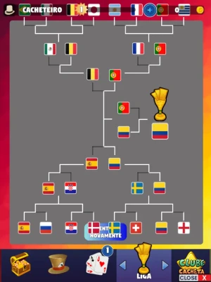 Jogue a liga de cacheta, com personagens representeando diferentes países,