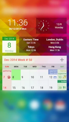 Lunar phase, sunrise and sunset time are supported. Over 10 widgets are available, including agenda and calendars, clock, world cities time, and sticky note with voice recording feature, counter, Todo list, etc.