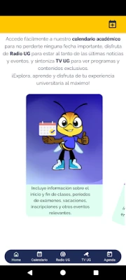 Accede fácilmente a nuestro calendario académico para no perderte ninguna fecha importante, disfruta de Radio UG para estar al tanto de las últimas noticias y eventos, y sintoniza TV UG para ver programas y contenidos exclusivos. ¡Explora, aprende y disfruta de tu experiencia universitaria al máximo!