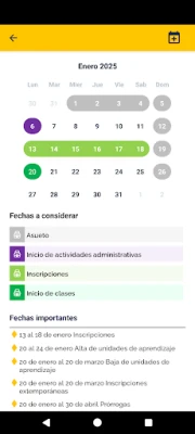 Calendario académico Incluye información sobre el inicio y fin de clases, períodos de exámenes, vacaciones, inscripciones y otros eventos relevantes.