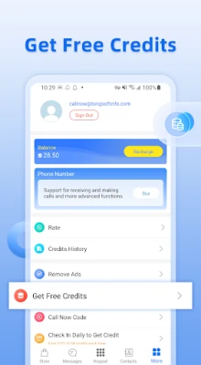 Earn free calls through in-app recharge or daily check-in and watching ads, and make low-cost international calls