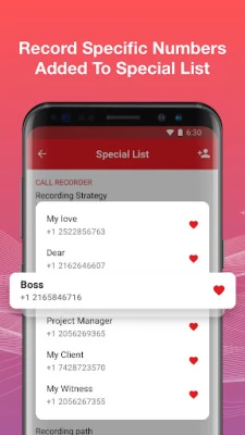 ✔You will be able to only record calls between these numbers