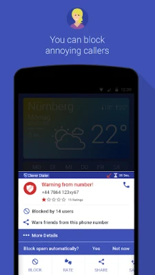 With Clever Dialer spam callers don't stand a chance. Incoming calls are being checked against our extensive spam caller database. The Clever Dialer community helps us staying on top of things. Every user can report spam calls, so even numbers that spam only very recently are included.