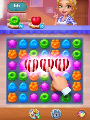 You will act as little girls, accompanied by the lovely husky. Thousands of puzzle levels filled with candies and cakes carefully well crafted. Enter the juicy adventure and travel through the sweet house of candy treats. Match and blast three or more of the same candies to clear the levels! Make the most delicious combinations and get through challenging levels filled with candy! Blast candies together match the rarest treats and share with your friends. More treats are in Candy Smash Mania for you to discover in this juicy land! You would be addicted to this candy treat, such as Jam, honey, sweet, and biscuits treasure trove of tasty treats!