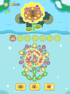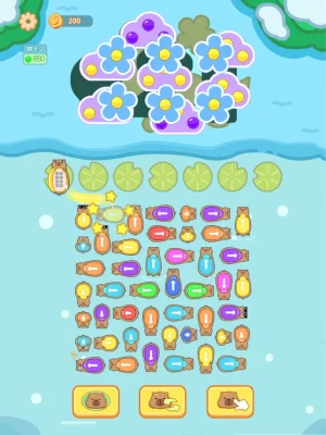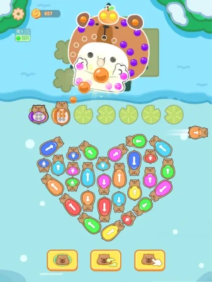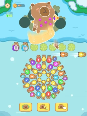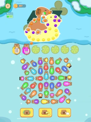 The adorable capybaras are almost late for school, so hurry up and pack their lunchboxes for them. Tap on a capybara to move it to a lotus leaf, collect dumplings of the same color to fill the lunchboxes, and you can clear the level once all the capybaras have their lunchboxes packed. There are quite a few capybaras waiting to go to school, so you need to use your brain and plan a reasonable route to solve the congestion. Additionally, collecting dumplings can summon different capybaras, and the capybaras you have obtained can be placed in the dorms to create a unique dorm of your own.
