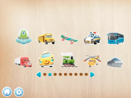 The theme of this Puzzle is ‘Vehicles’, check our other apps for more themes like ‘Animals’, 'Food', 'Bath', 'Kitchen', 'Furniture' and 'Tools'