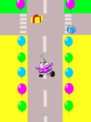 Hop into one of the themed cars and drive down the road decorated to match the fun theme, like trains, birthday, and race cars. But watch out for the obstacles driving by… you will have to step on the brakes to slow down or stop in this interactive super fun driving game! Designed for kids of all ages this entertaining game will keep you on the road for tons of fun.