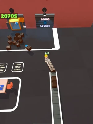 - Stack the boxes to earn money.- Upgrade the factory to hire some workers.