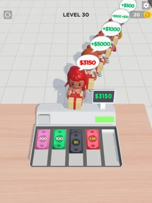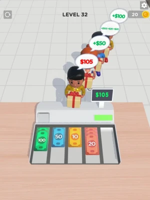 Take the money from the customer and give them the change. Give the customer the amount of money they want by providing appropriate values at the cash register