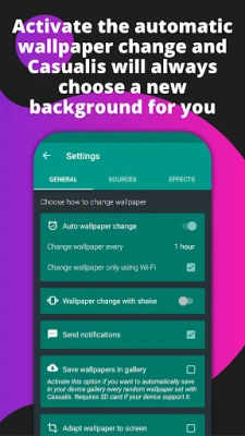 - Choose a wallpaper from one of the many collections available - Activate the automatic wallpaper change and Casualis will always choose a new background for you - Set a wallpaper by shake or with the widget - Use the wallpapers in your gallery. You can also use entire folders - Did you find a great wallpaper? Add it to your favorites - You can change both the home screen and the lock screen - Make your wallpapers unique by applying effects