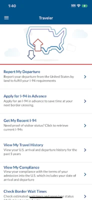 • Apply for a Provisional I-94: The I-94 Entry feature allows travelers to apply for a provisional I-94 prior to arriving at a land border crossing. Travelers who apply for their I-94 ahead of time will experience faster processing times to expedite entry. Travelers can also quickly access their current I-94 submission to view critical information such as, how long they can remain in the U.S., and use it for proof of visitor status once in the United States.