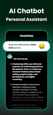 ChatVista is always open, ready to assist whenever you ask for help. Whether it's day or night, work or play, your AI Chat Assistant is just a tap away.