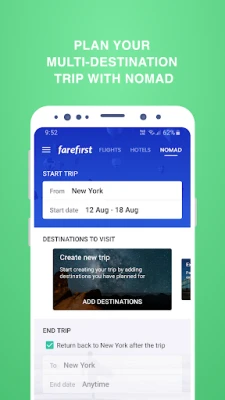 • Nomad: Helps you find the best dates to travel for a series of destinations of your choice, customize every aspect of your travel needs with this unique and revolutionary feature.