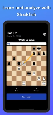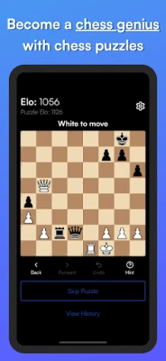 Chess Puzzles and Tactics. This app has puzzles and tactics for all players whether you're a beginner who just learned the rules or an advanced player. You can customize your puzzles and elo ratings to help you improve faster at your weak points.