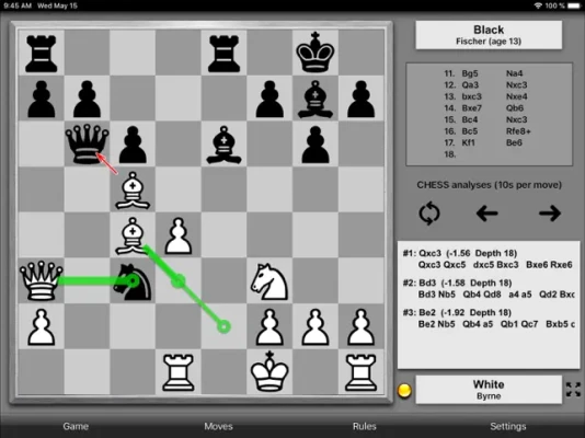 • The chess engine displays its thinking, up to 20 moves ahead.