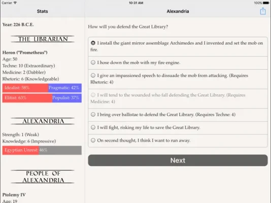 Change the course of history! Can your scientific discoveries save the ancient Library of Alexandria? Will you defend the empire's legacy, or your own?