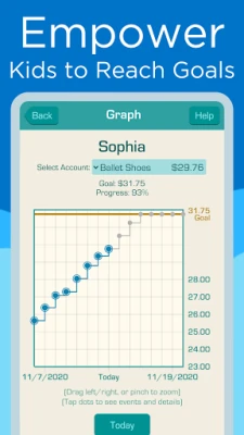 • Unlimited history in the Graph view -- the history of savings, spending, and chores activity.