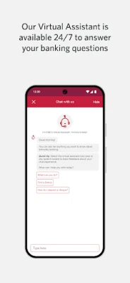Our Virtual Assistant is available 24/7 to answer your banking questions and is able to perform everyday banking transactions on your behalf.
