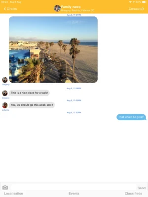 Circles is a FREE App and cares about your Privacy !This App provides best in class end-to-end security and encryption on Voice and Video Calls, and for your Messages, Classifieds, Events and Location points.
